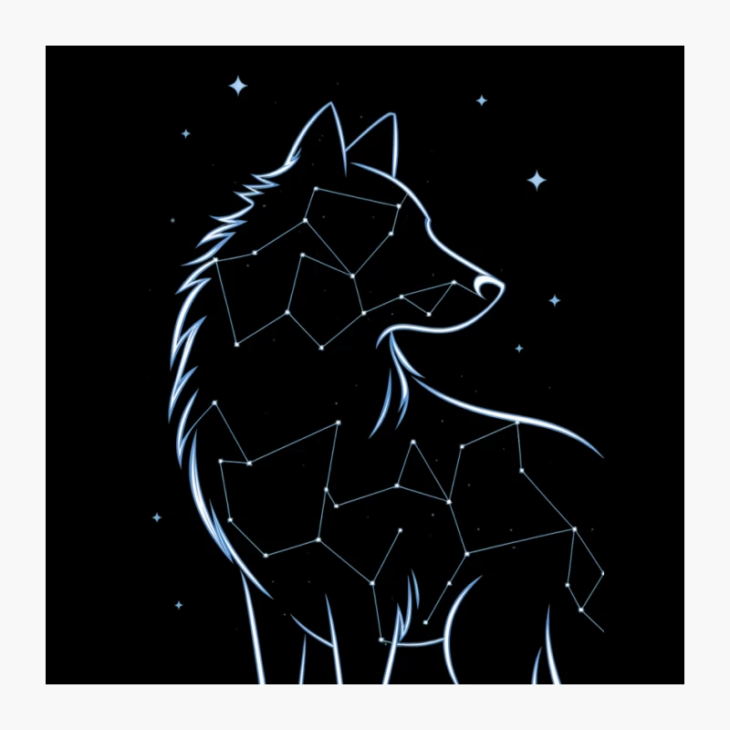 Geometric Wolf Constellation: A Celestial Blue Sketch Pin