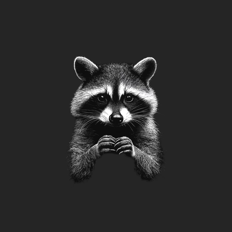 Detailed Black and White Portrait of a Cute Raccoon Female Pullover Sweatshirt