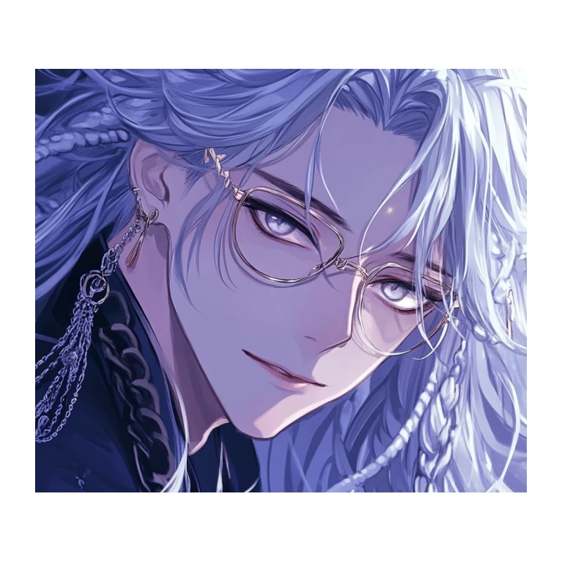 Ethereal Anime Male with Flowing Purple Hair and Glasses Tapestry