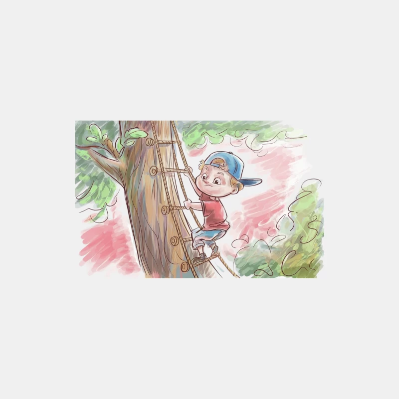 Adventurous Child Climbing Tree on Rope Ladder in Illustrated Nature Scene Male Tank Top
