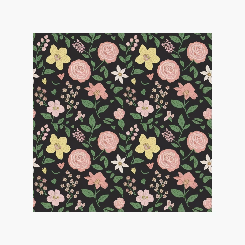 Vintage Floral Botanical Pattern with Roses on Dark Background Cotton Tote Bag