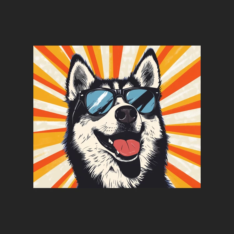 Cool Husky with Sunglasses in Retro Pop Art Style Male Pullover Sweatshirt