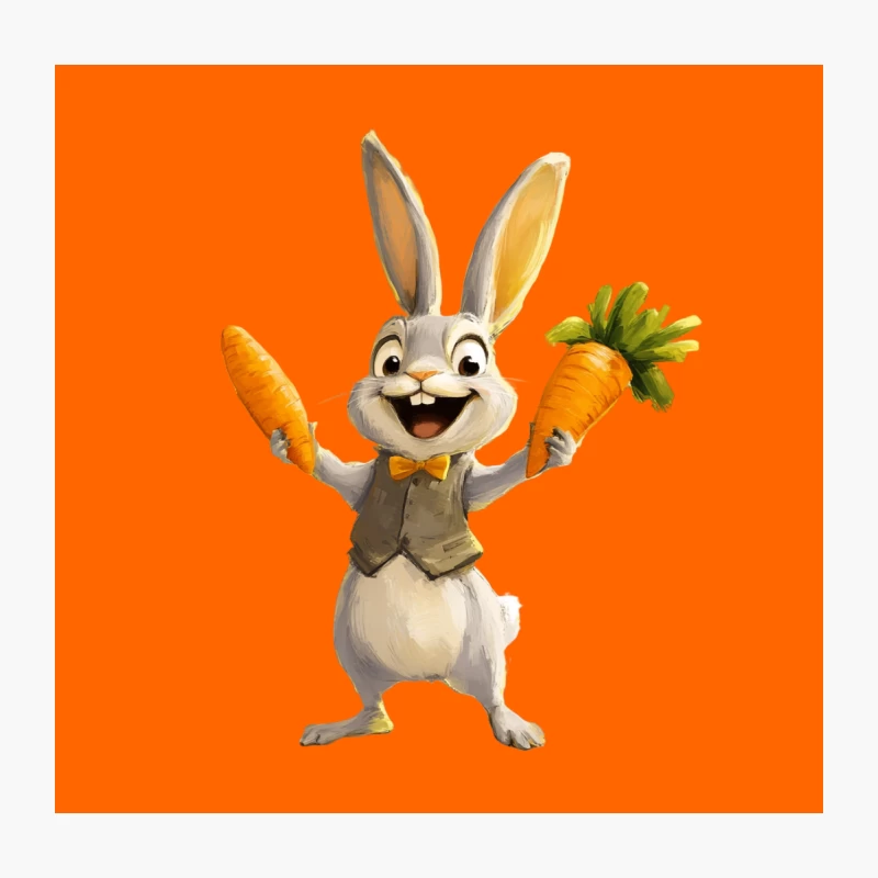 Cheerful Animated Bunny Holding Carrots Throw Pillow