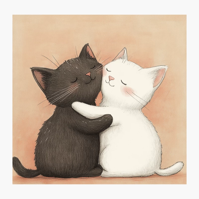 Adorable Black and White Cats Embracing in Cute Cartoon Illustration Throw Pillow