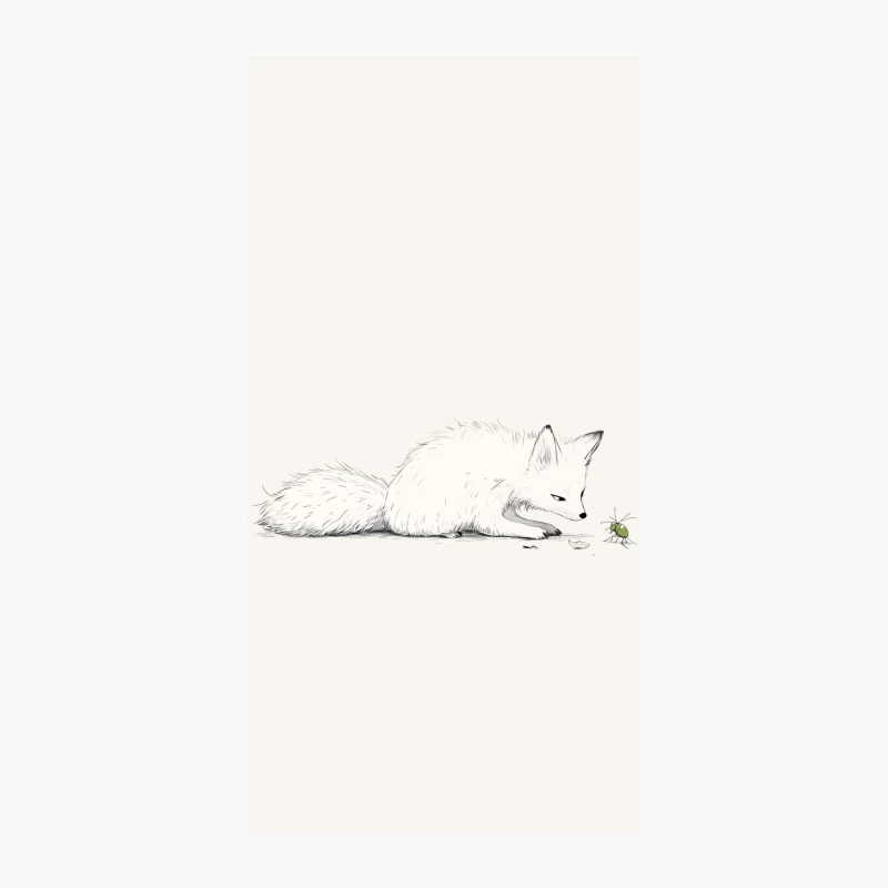 Minimalist Black and White Illustration of Arctic Fox Meeting Bug iPhone Case