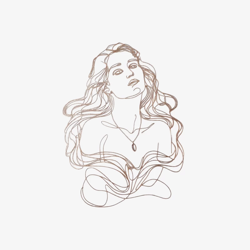 Flowing Sketch Portrait of Long-Haired Woman with Necklace Female Long Sleeve T-Shirt