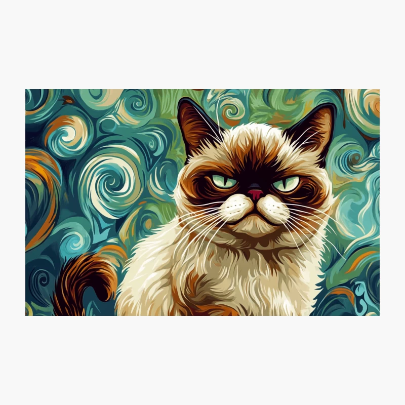 Vibrant Colors Siamese cat Swirling Background grumpy cat Pet Portrait digital art artistic painting