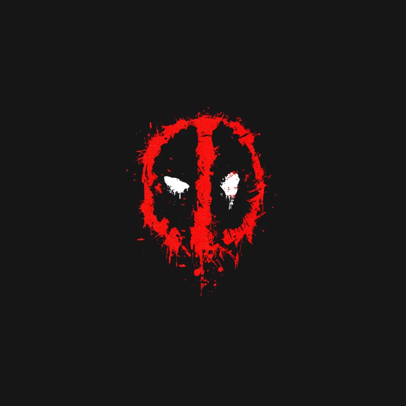 superhero symbol Deadpool logo red splatter blood graphic comic book icon grunge design