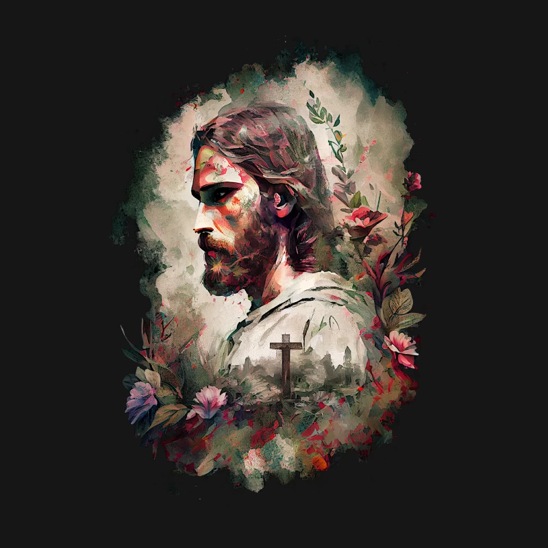 Jesus portrait floral elements cross spiritual Male T-Shirt