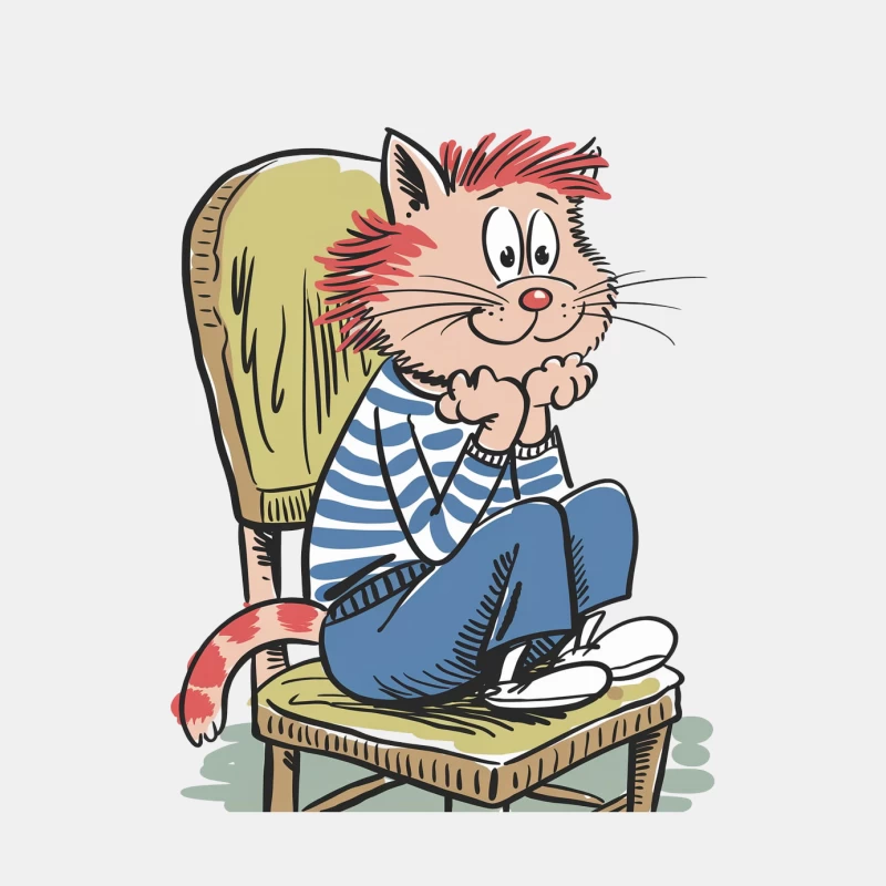 Casual Cartoon Cat Lounging in Striped Shirt on Green Chair Male Tank Top