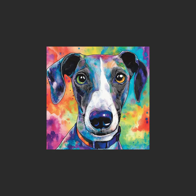 Vibrant Colors pop art animal art whimsical abstract background colorful dog portrait greyhound
