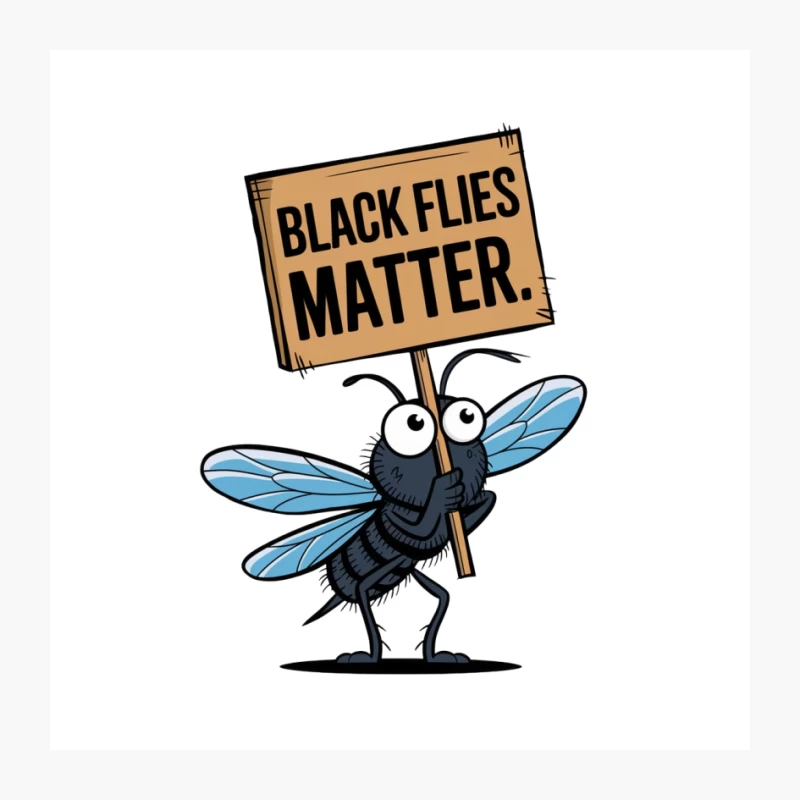 Cartoon Fly Holding "Black Flies Matter" Protest Sign Pin