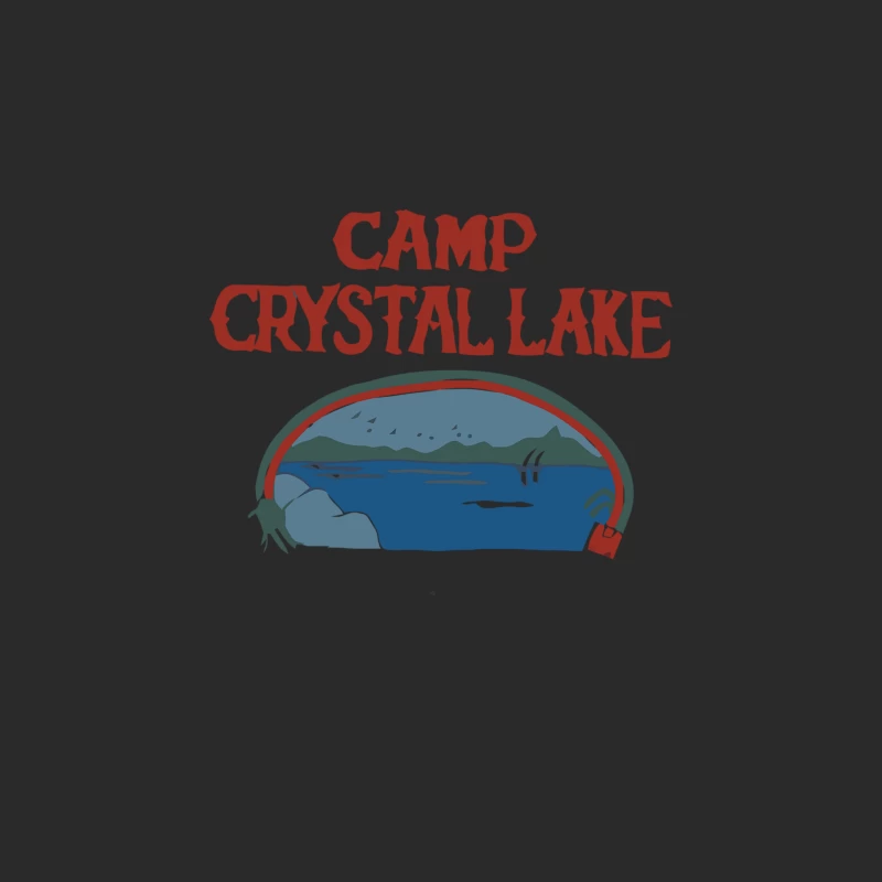 graphic design Camp Crystal Lake Vintage Style Friday the 13th horror movie reference lake scene camping logo