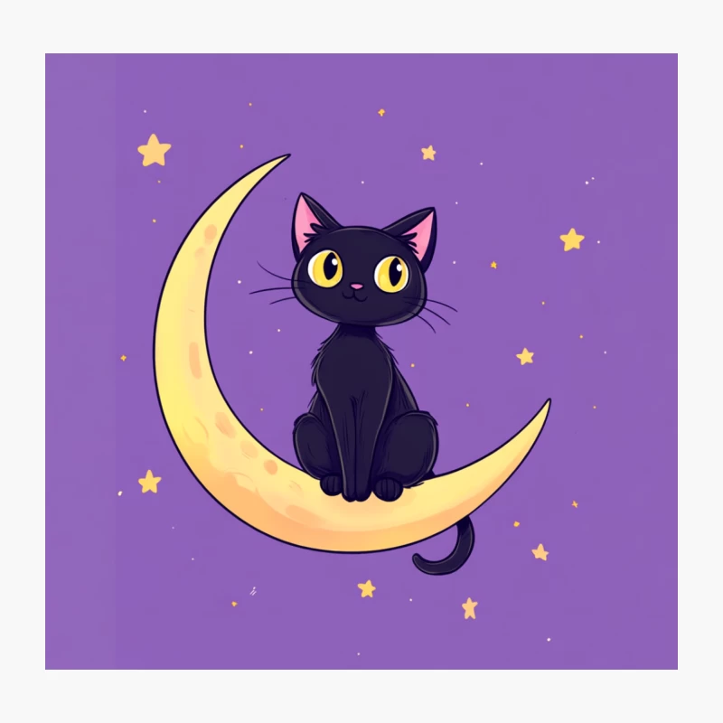 Cute Black Cat Sitting on Crescent Moon under Starry Night Throw Pillow