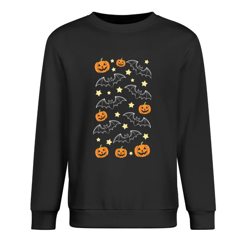 Festive Halloween Pattern with Pumpkins, Bats, and Stars Male Pullover Sweatshirt