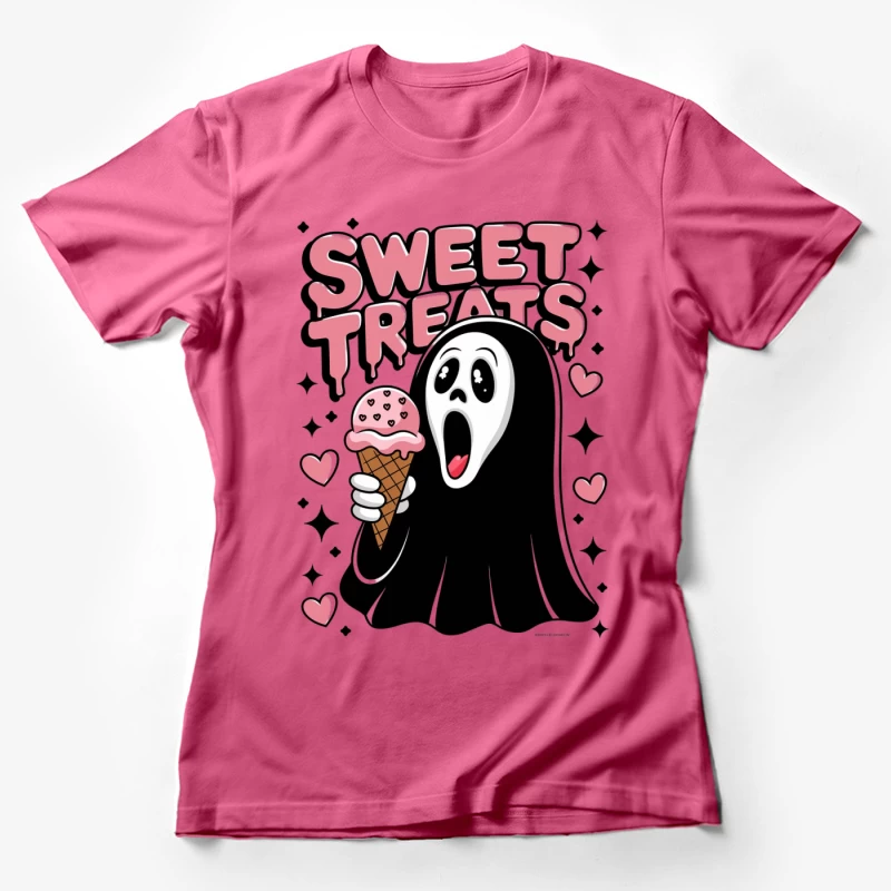Geometric Witch Silhouette: Halloween Illustration in Pink and Black Female Pullover Sweatshirt