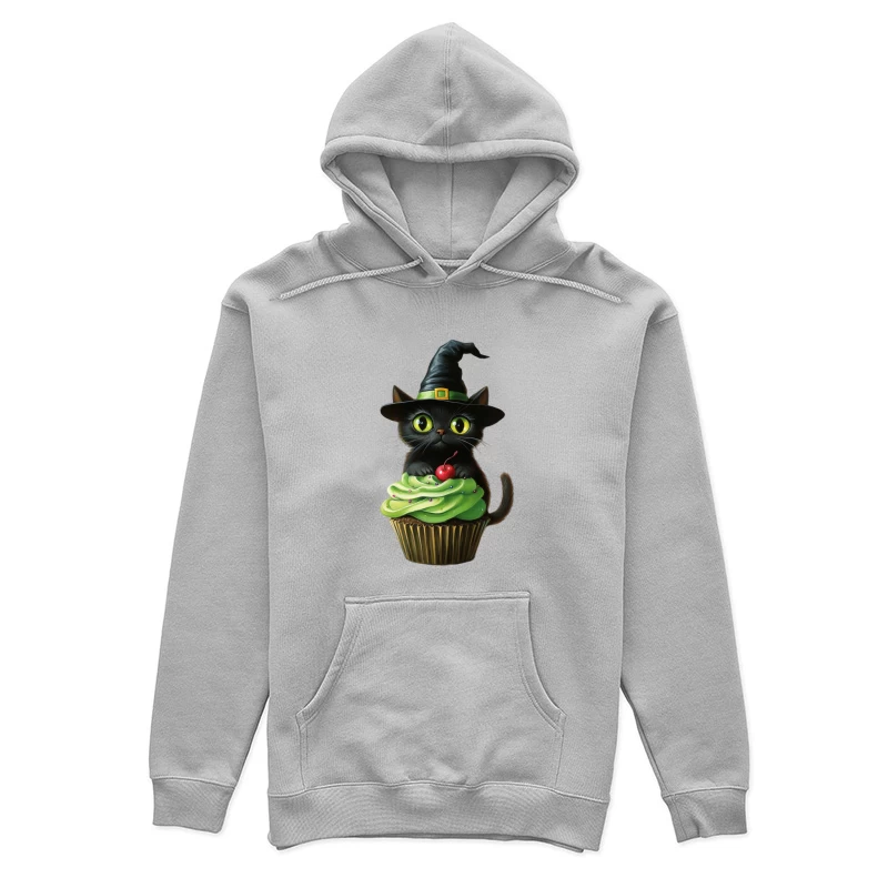 Spooky Sweet: Halloween Black Cat Cupcake with Witch Hat Female Pullover Hoodie