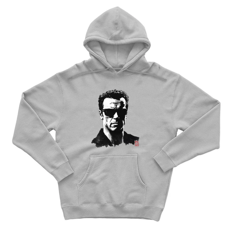 Monochrome Sketch Portrait of Iconic Movie Character with Sunglasses Male Pullover Hoodie