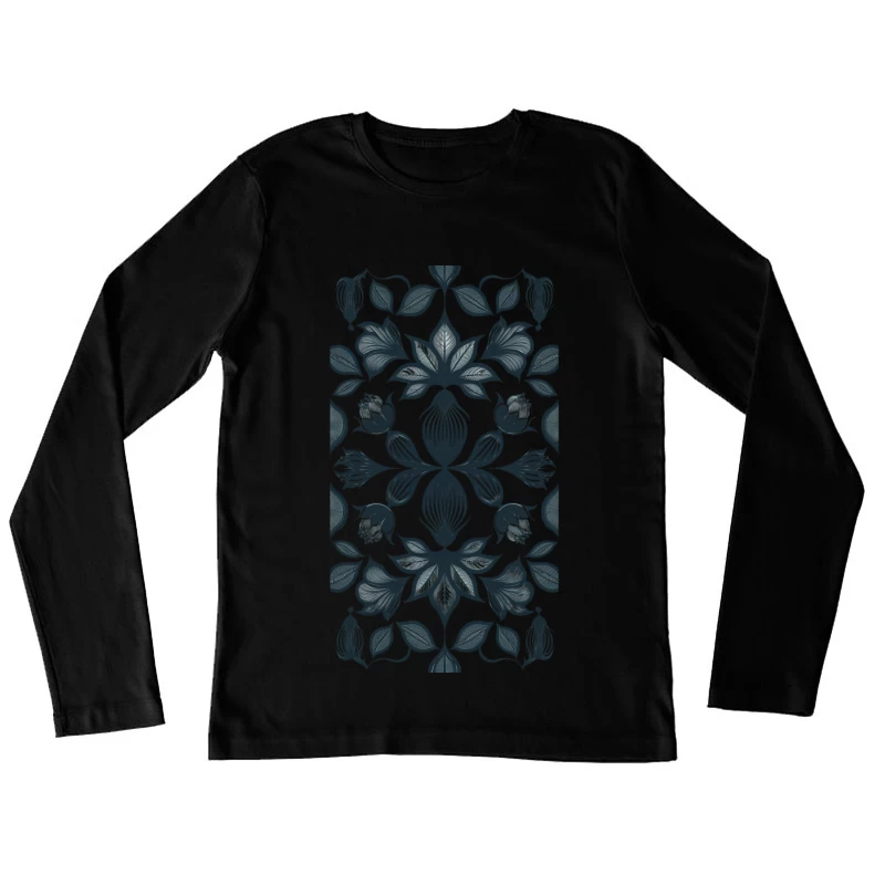 Symmetrical Monochrome Floral Folk Art Pattern Female Long Sleeve T-Shirt