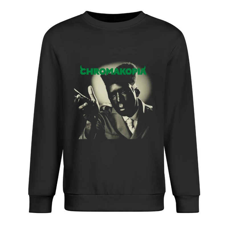 Chromakopia Artistic Monochrome Album Cover with Green Text Male Pullover Sweatshirt