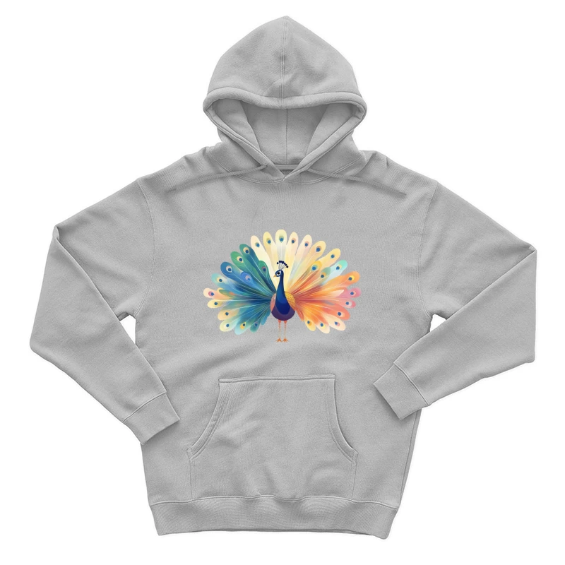 Vibrant Peacock Illustration with Rainbow Feathers Male Pullover Hoodie