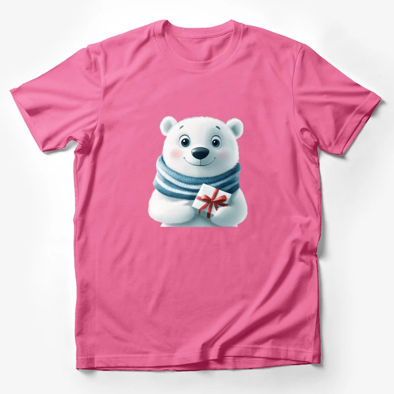 Cute Cartoon Polar Bear with Christmas Gift and Winter Scarf Male T-Shirt