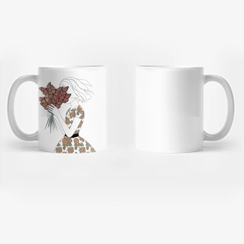 Delicate Butterfly Bouquet: A Feminine Floral Illustration Coffee Mug