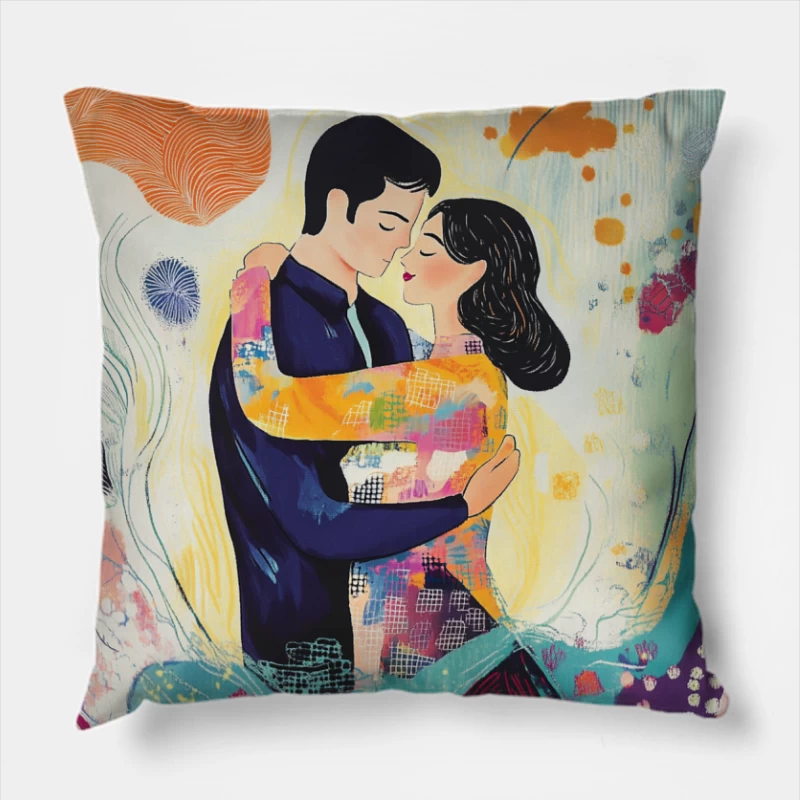 Colorful Cartoon Character Skateboarding in Graffiti Style Throw Pillow