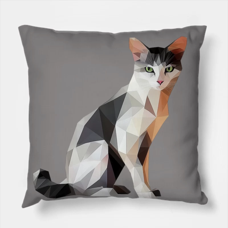 cat geometric low poly digital art animal illustration pet abstrac Throw Pillow