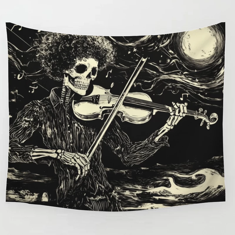 Undead Samurai Warrior in Traditional Armor - Japanese Digital Art Tapestry