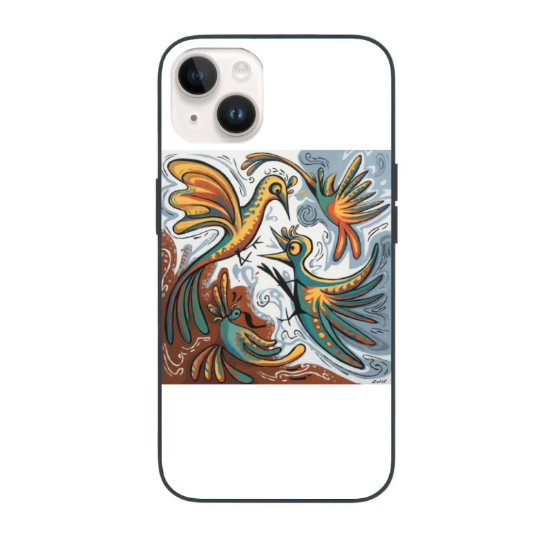 Vibrant Folk Art Illustration: Woman and Bird Amidst Floral Nature iPhone Case
