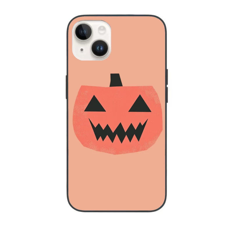 Adorable Black Cat Cartoon Illustration with Orange Ears iPhone Case