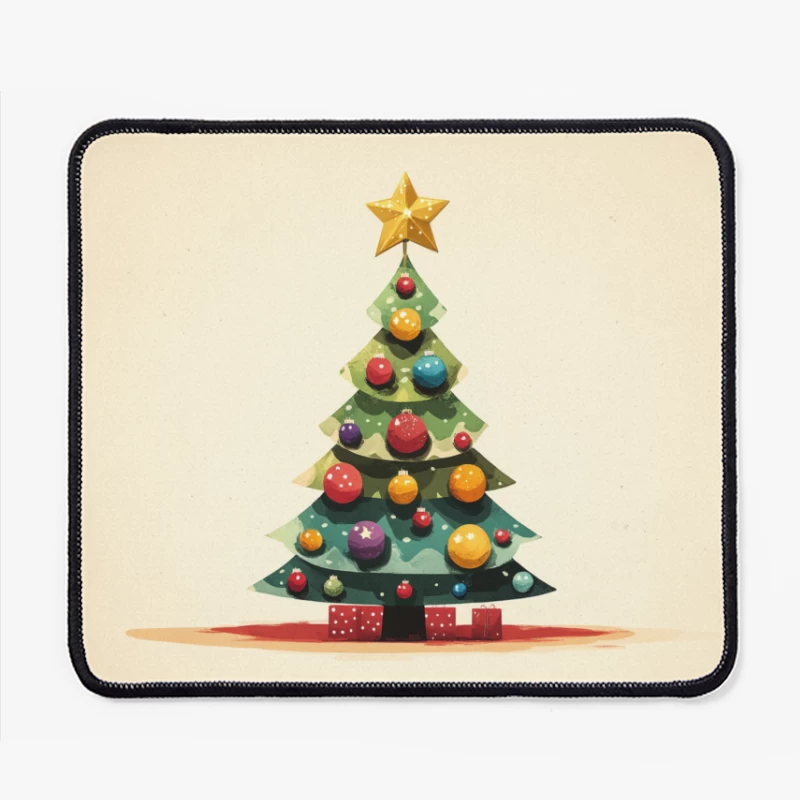 Decorated Christmas Tree with Star and Presents Illustration Mouse Pad
