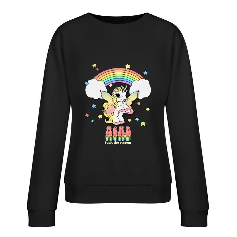 Cute Cartoon Unicorn with Rainbow and Anti-Establishment Message Female Pullover Sweatshirt
