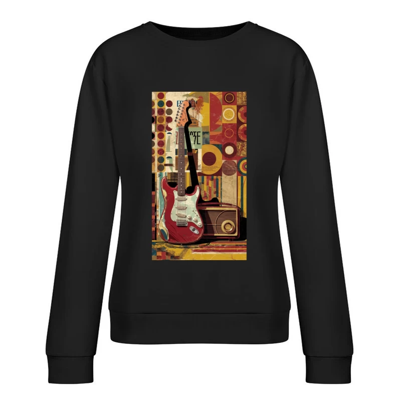 Retro Music Collage: Electric Guitar and Vintage Radio Male Pullover Sweatshirt