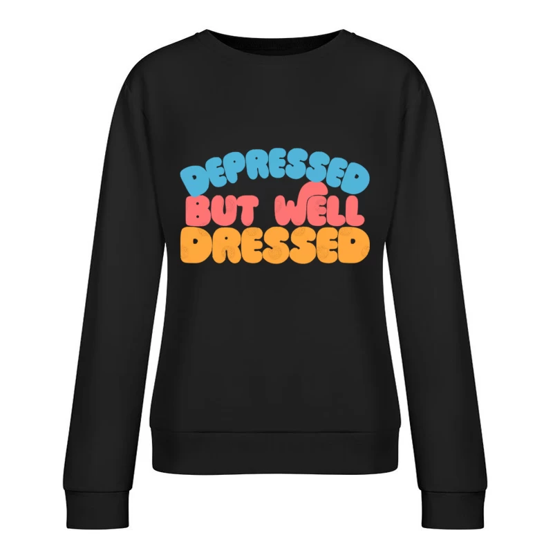 Depressed but well dressed - retro typography design Female Pullover Sweatshirt
