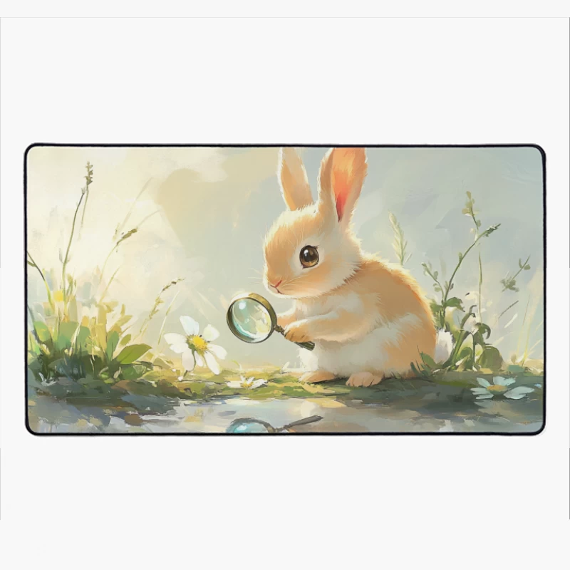 Adorable Smiling Cartoon Bunny: A Cheerful White Rabbit Illustration Desk Mat