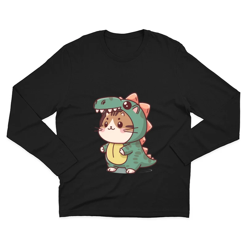Adorable Cat in Dinosaur Costume: Kawaii Cartoon Illustration Male Long Sleeve T-Shirt