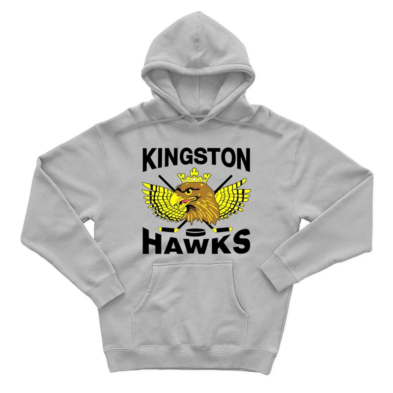 Kingston Hawks Ice Hockey Team Logo with Crowned Eagle Mascot Male Pullover Hoodie