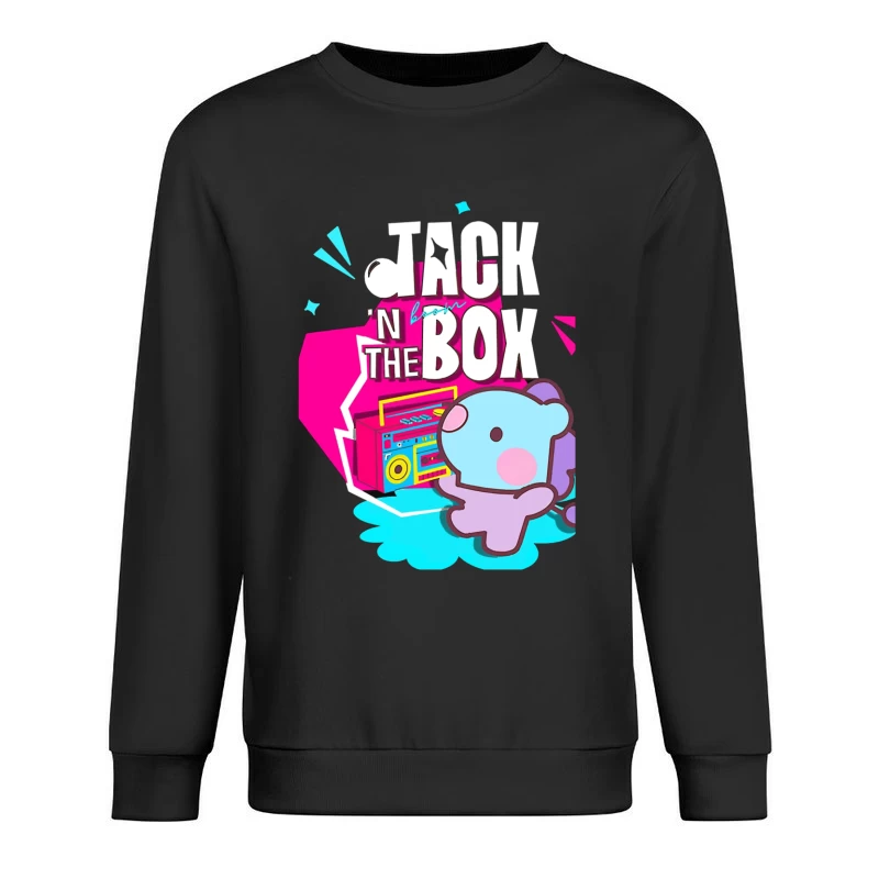 Playful "Jack in the Box" Cartoon with Cute Character and Boombox Male Pullover Sweatshirt