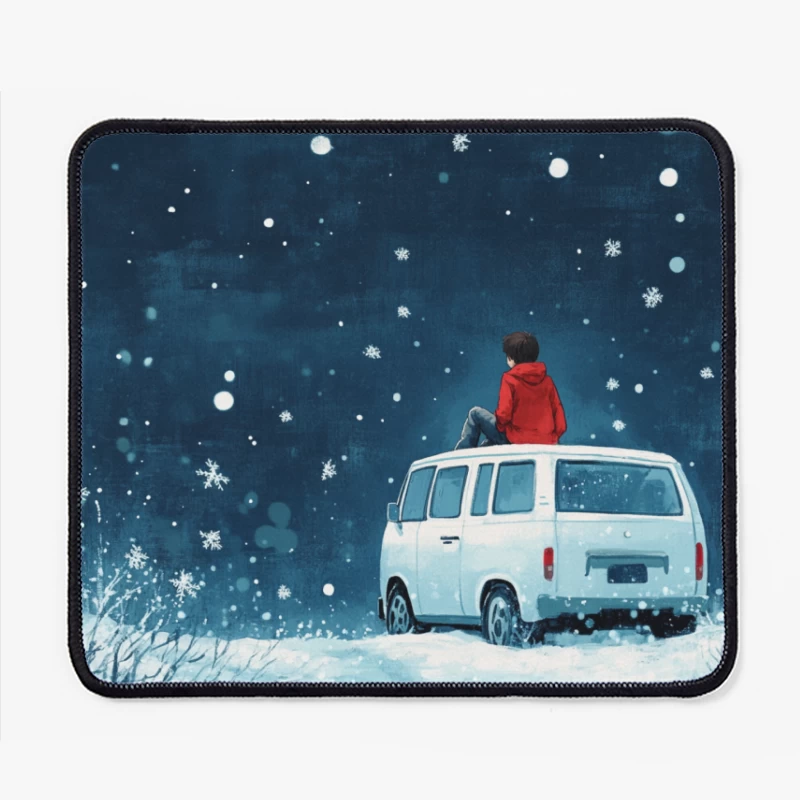 Minimalist Illustration of Woman Walking in Green and Red Female Pullover Sweatshirt