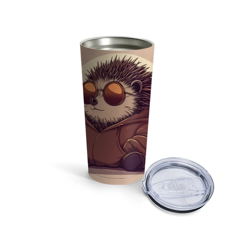 Cute Cartoon Hedgehog Wearing Sunglasses and Brown Hoodie Travel Mug
