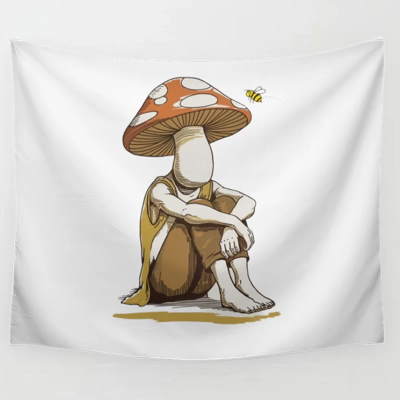 Whimsical Mushroom Being: A Surreal Fantasy Illustration Tapestry