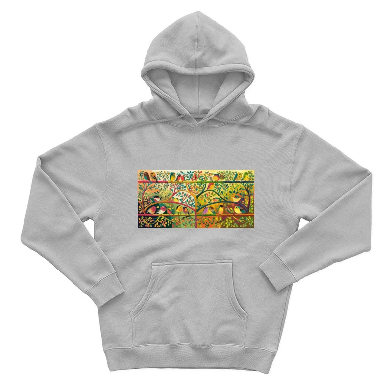 Whimsical Folk Art Birds in Colorful Tree Illustration Male Pullover Hoodie