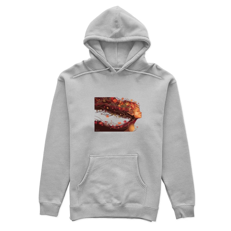 Autumnal Portrait: Wind-Swept Profile with Flowing Leaves Female Pullover Hoodie