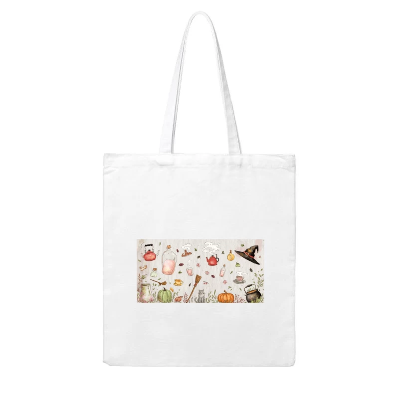 Cozy Autumn Witchcraft: A Magical Tea Illustration Cotton Tote Bag