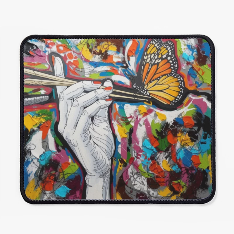 Surreal Hand and Butterfly: A Vibrant Abstract Street Art Fusion Mouse Pad