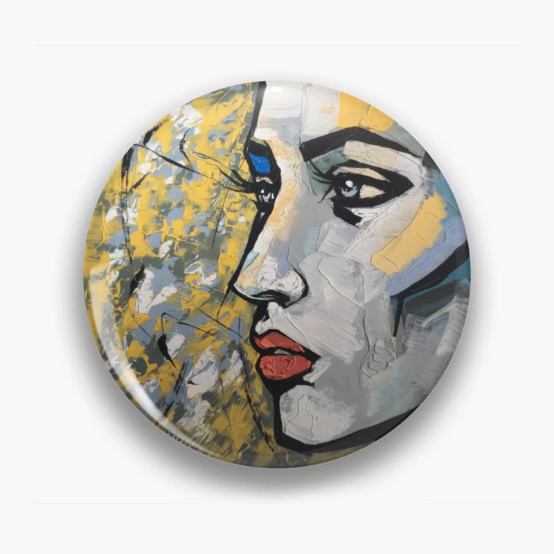 Expressive Abstract Portrait: Modern Face in Yellow and Blue Pin
