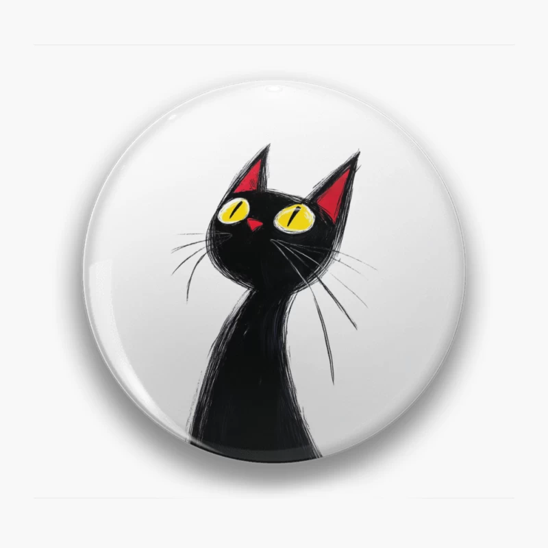 Stylized Black Cat with Yellow Eyes and Red Ears Male Long Sleeve T-Shirt