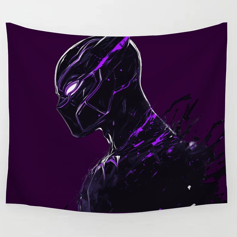 Black Panther Glowing Purple Black Panther Silhouette in Comic Art Style Tapestry